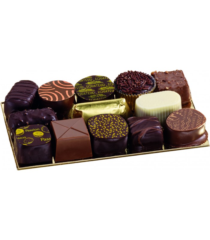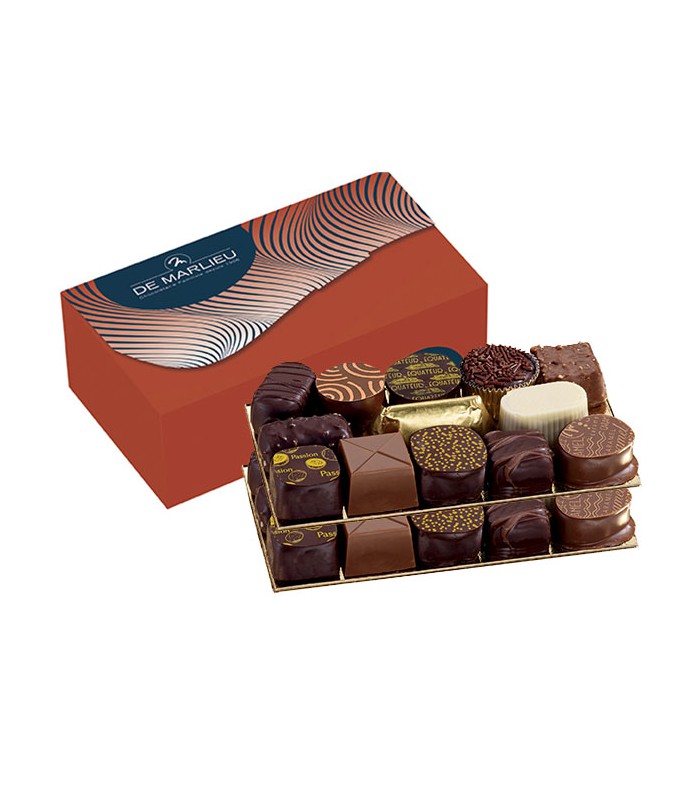 Nouveau packaging. 13 variétés de chocolats rangés dans un bel étui confiseur : 26 chocolats à déguster !