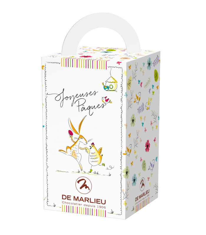 Bel œuf croustillant et craquant en chocolat Noir au riz soufflé (130g) avec un sachet de 50g de friandises (œufs pâtes de fruits, œufs nougatine, fritures lait praliné).