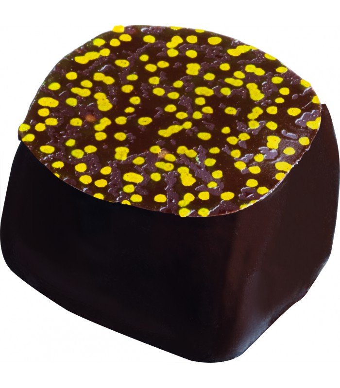 Ganache Noir Ganache intense en cacao adoucie par une note de vanille enrobée de chocolat noir.