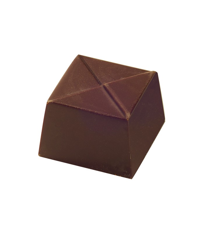Carré praliné Lait Praliné noisette-amande, enrobé de chocolat lait.